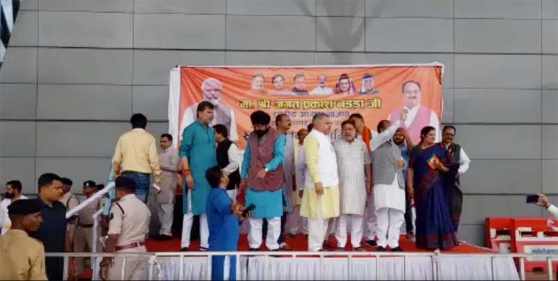 रायपुर। भारतीय जनता पार्टी के राष्ट्रीय अध्यक्ष जगतप्रकाश नड्डा का आज यहां स्वामी विवेकानंद एयरपोर्ट पर छत्तीसगढ़ की लोकसंस्कृति से सराबोर आत्मीय स्वागत किया गया। श्री नड्डा के विमानतल के बाहर आने के पूर्व से ही लोकनर्तकों कि दर्जनों टोलियों ने अपने नृत्य कौशल का प्रदर्शन कर विमानतल परिसर में छत्तीसगढ़ की लोकशैली की छटा बिखेर दी। विमानतल परिसर में बने स्वागत मंच पर श्री नड्डा के पहुंचते ही माहौल में उत्साह चरम पर पहुंच गया।