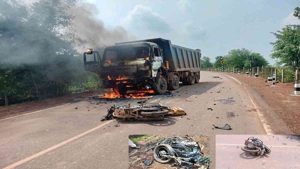 ACCIDENT NEWS: हाईवा की टक्कर से बाइक से स्कूल जा रहे दो छात्रों की मौत, गुस्साए ग्रामीणों ने हाईवा पर लगा दी आग