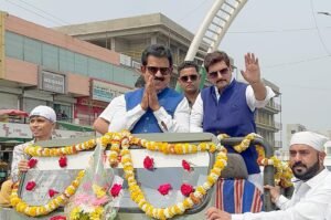 डेढ़ किलोमीटर लंबी रोड शो मेंएच लोगों ने बरसाए फूल