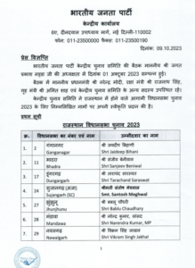 BIG BREAKING : राजस्थान भाजपा उम्मीदवारों की पहली सूची जारी, वसुंधरा का नाम गायब, 7 सांसदों को मैदान में उतारा, देखें लिस्ट
