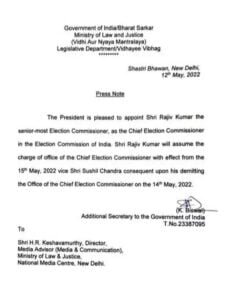 Rajiv Kumar will take over as Chief Election Commissioner, notification issued