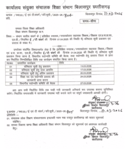 रायपुर। बिलासपुर शिक्षा संभाग से शिक्षकों के लिए बड़ी खबर सामने आई है। लंबे समय से लंबित पदोन्नति प्रक्रिया अब शुरू होने जा रही है। संभाग के संयुक्त संचालक R. P. Aditya ने डीईओ और बीईओ को जरूरी निर्देश जारी कर दिए हैं।