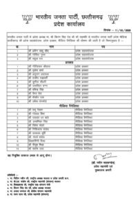 जारी सूची के अनुसार प्रदेश सहसंयोजक के रूप में प्रवीण साहू ‘सीए’, गोविंदा गुप्ता और राहुल राय को जिम्मेदारी दी गई है।