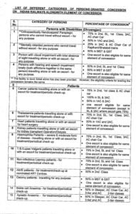 इसी तरह सिनियर सिटीजंस को भी यह सुविधा लागू कर दी गई है। 60 साल से उपर के पुरूश को 40 प्रतिशत की छूट मिलेगी जबकि 58 की उम्र से उपर महिला को 50 प्रतिशत की छूट रेलवे टिकट पर देगा।
