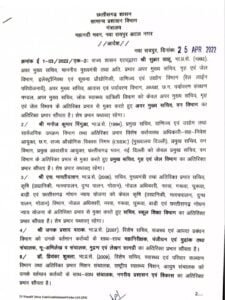 Trending Nowशहर एवं राज्य CG BIG BREAKING : 17 आईएएस अफसरों कक नवीन पदस्थापना, OSD भी नियुक्त, पढ़ें नाम … By: KC NEWS Date: April 25, 2022 New posting of 17 IAS officers, OSD also appointed, read name … रायपुर। छत्तीसगढ़ सरकार ने 17 आईएएस अफसरों का नवीन पदस्थापना आदेश जारी किया हैं। वही अब से कुछ ही देर पहले आईपीएस अफसरों को प्रमोशन मिला था। पढ़ें आदेश – Previous articleरेलवे जीएम को विधायक शैलेष ने दी उग्र आंदोलन की चेतावनीNext articleIAS अधिकारियों की नवीन पदस्थापना जारी, देखिये सूची KC NEWS Share post: FacebookTwitterPinterestWhatsApp SubscribeI want inI've read and accept the Privacy Policy. #Crime Updates TEJI KAHLON SHOT : कनाडा में पंजाबी सिंगर तेजी कहलों पर फायरिंग, रोहित गोदारा गैंग ने ली जिम्मेदारी AKIL AKHTAR DEATH CASE : पूर्व DGP मुस्तफा के बेटे की रहस्यमय मौत ने खोले पारिवारिक रिश्तों के राज CG FRAUD CASE : मेडिकल व्यवसायी से 73 लाख और यूट्यूब निवेश ठगी में 12.79 लाख की चपत CG MINOR GIRL KILLES LOVER : लॉज में नाबालिग प्रेमिका ने की प्रेमी मोहम्मद सद्दाम की हत्या दिल दहला देने वाला मामला: मां ने जन्म देने के तुरंत बाद नवजात का घोंटा गला, शव कूड़े में फेंक हो गई फरार More like thisRelated BREAKING NEWS: छत्तीसगढ़ में पुलिस विभाग में बड़ा फेरबदल, 7 आईपीएस अधिकारियों को किया इधर से उधर Jiya Choudhary - 35 minutes ago BREAKING NEWS: रायपुर। 24 अक्टूबर 2025 — छत्तीसगढ़ शासन... CG NEWS: हनुमानजी की फोटो लेकर युवक ने लगाई तालाब में छलांग, मौत से सनसनी Jiya Choudhary - 1 hour ago CG NEWS: दुर्ग। छत्तीसगढ़ के दुर्ग जिले में एक... CG TRANSFER BREAKING : छत्तीसगढ़ पुलिस में बड़े तबादले, 7 IPS अधिकारियों को नई जिम्मेदारी KC NEWS - 1 hour ago CG TRANSFER BREAKING: Major transfers in Chhattisgarh Police, 7... CG BREAKING : छत्तीसगढ़ में 1 नवंबर को सभी शैक्षणिक संस्थानों में अवकाश … KC NEWS - 1 hour ago CG BREAKING: Holiday in all educational institutions in Chhattisgarh...