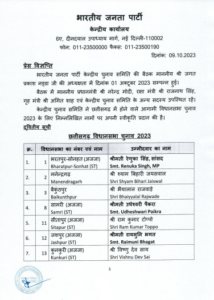 PRESS RELEASE–2nd List of BJP candidate for General Election to the Legislaitve Assembly of Chhattisgarh 09.10.2023