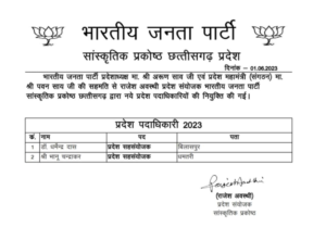 CG BREAKING: 2 appointments in BJP’s state cultural cell, see order