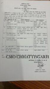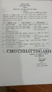 मिली जानकारी केअनुसार लीना कोसम को मुख्य कार्यपालन अधिकारी, जिला पंचायत सूरजपुर से हटाकर परीक्षा नियंत्रक लोक सेवा आयोग, रायपुरबनाया गया है । कमलेश नंदनी साहू, अपर कलेक्टर, कोरिया को मुख्य कार्यपालन अधिकारी, सूरजपुर बनाया गया है । देवनारायणकश्यप को मुख्य कार्यपालन अधिकारी, जिला पंचायत सुकमा से हटाकर उप सचिव, वन विभाग, मंत्रालय बनाया गया है। अरविंदपांडेय को महाप्रबंधक पाठ्य पुस्तक निगम से हटाकर अपर कलेक्टर गरियाबंद बनाया गया है । प्रेमप्रकाश शर्मा को मुख्य कार्यपालनअधिकारी, कोंडागांव से हटाकर महाप्रबंधक, पाठ्य पुस्तक निगम की जिम्मेदारी दी गई है ।वही गोकुल कुमार रावटे को अपर कलेक्टरदुर्ग से हटाकर मुख्य कार्यपालन अधिकारी, जिला पंचायत जांजगीर बनाया गया है । चेतन बोरधरिया को अवर सचिव, जनसंपर्कविभाग, उप महाप्रबंधक संवाद से हटाकर avar सचिव, खेल एवं युवा कल्याण विभाग का बनाया गया है । वैभव क्षेत्रज्ञ को संयुक्तकलेक्टर, बिलासपुर से हटाकर उप महाप्रबंधक संवाद एवं अवर सचिव खनिज विभाग बनाया गया है ।