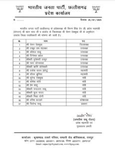 CG BREAKING: Chennan Deshmukh gets the command, new BJP team announced!