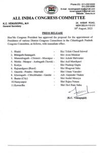 CG BREAKING: Congress appoints 11 new district presidents, see list
