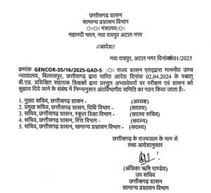 CG BREAKING: State government formed a committee to resolve the issue of B.Ed assistant teachers.
