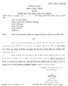 CG BREAKING: State mourning in Chhattisgarh on the demise of former Prime Minister Dr. Manmohan Singh, CM Vishnudev Sai expressed grief.