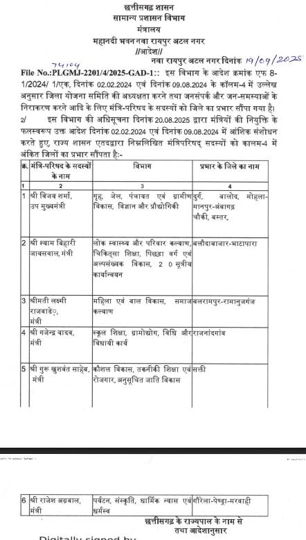 CG BREAKING: सरकार ने बदला 6 मंत्रियों के जिले के प्रभार, जानिए किसे मिली कहां की जिम्मेदारी…