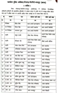 CG BREAKING: एमसीबी। जिले में पुलिस विभाग ने तीन थाना प्रभारीयों का तबादला करते हुए उन्हें नई जिम्मेदारियां सौंपी हैं। इस क्रम में थाना चिरमिरी के प्रभारी नयन गुप्ता को थाना झगड़ा खांड में पदस्थ किया गया है।