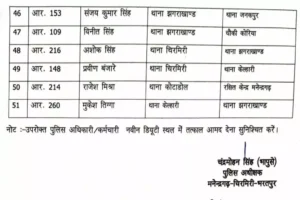 पुलिस विभाग ने बताया कि यह स्थानांतरण विभागीय पुनर्गठन और क्षेत्रीय आवश्यकताओं को ध्यान में रखते हुए किया गया है। इसी क्रम में थाना खड़गवां के प्रभारी विजय को भी नई जिम्मेदारी सौंपी गई है।