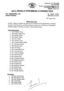 CG CONGRESS BREAKING: List of Congress office bearers released, 140 secretaries and 23 general secretaries appointed, see order