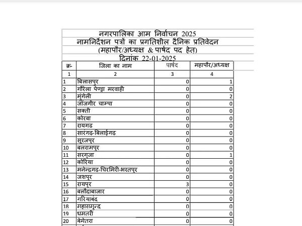 CG Election News : आज से नामांकन प्रक्रिया शुरू, पार्षद पद के लिए रायपुर में 3 प्रत्याशियों ने खरीदे नामांकन पत्र