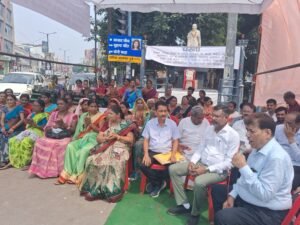 रायपुर। पूर्ववर्ती सरकार में महासमुन्द व आरंग के भू माफिया हरमीत सिंह खनुजा, रविन्द्र अग्रवाल, जितेन्द्र अग्रवाल द्वारा राजस्व अधिकारियों से साठगांठ कर खादी बुनकर मजदूरों की पंडरी स्थित खादी भंडार की जमीन के राजस्व रिकार्ड में कूटरचना कर 60 साल पूर्व विक्रय की जा चुकी फर्जी रजिस्ट्री से चढ़ाई 1,80,000 वर्गफीट बेशकीमती करोड़ों की जमीन अपने परिवार के 13 सदस्यों के नाम, फिर कूटरचित हकत्याग पत्र तैयार कर उसे पंजीकृत बताकर तहसीलदार अजय चंद्रवंशी से मिलकर 11 लोगों का नाम गैरकानूनी रुप से विलोपित करवा, ग्यारह करोड़ का पार्टनरशीप डीड राज्य सरकार का फर्जी आदेश पत्र बनाकर दशमेश रियल इन्वेस्टर पार्टनर हरमीत सिंग खनुजा उर्फ राजू सरदार एवं अन्य 4 के नाम एक ही दिन में किया ट्रांसफर जबकि पन्द्रह दिवस से पूर्व नामांतरण नहीं हो सकता बुनकर मजदूर व संस्था के पदाधिकारी साल भर पूर्व कूटरचना किए गए राजस्व रिकार्ड को सुधारने लगा रहे राजस्व अधिकारियों के चक्कर, अपनी सम्पत्ति को भू माफिया के चंगुल से छुड़ाने चक्कर लगा कर थके बुनकर मजदूर व समिति के पदाधिकारियों ने गांधी पुतला आजाद चौक में आज दिया धरना, धरने में प्रतीकात्मक विरोध करने बुनकर मजदूरों ने चरखा चलाकर किया विरोध, समिति के मंत्री अजय तिवारी ने बताया कि स्वतंत्रता संग्राम के युद्ध में स्वदेशी खादी वस्त्रों को बढ़ावा देने स्वतंत्रता संग्राम सेनानियों द्वारा अपने अंशदान से वर्ष 1948 से पंजीकृत खादी बुनकर मजदूरों की संस्था के लिए खादी भंडार खोलने ग्राम पंडरी में 11.73 एकड़ जमीन चार पंजीकृत विक्रय पत्रों द्वारा खरीदी थी वर्ष 1961 में राजस्व अभिलेखों में अपना नाम चढ़ाने के पश्चात् खादी वस्त्रागार व बुनकर मजदूरों के निवास के लिए निर्माण करने तत्कालीन संचालक एवं स्वतंत्रता संग्राम सेनानी वैंकटेश कोहाड़े द्वारा अनुविभागीय अधिकारी को वर्ष 1963 में आवेदन देकर खसरा नंबर 267, 268, 269, 270, 271, 272, 273, 274, 275, 276, 281, 282, 283, 298, 299/1क, 299/1घ, 299/1छ, 299/1, 300/1 रकबा 10.38 एकड़ डायवर्सन कराया था जिसे अनुविभागीय अधिकारी राजस्व द्वारा 21 अक्टूबर 1963 को मंजुरी दिए जाने के पश्चात् राजस्व विभाग के परिवर्तित संधारण खसरा शीट नंबर 28 के प्लाट नंबर 1,2,3,4,5 एवं 6 देकर दर्ज किया गया था, जो कि वर्ष 1964 से लगातार ग्राम सेवा समिति के नाम पर दर्ज चला आ रहा था कि अचानक भू माफिया रविन्द्र अग्रवाल, जितेन्द्र अग्रवाल ने राजस्व अधिकारी तत्कालीन तहसीलदार मनीष देव साहू से साठगांठ कर रविन्द्र अग्रवाल के नाम से अपने स्व. पिता बृजभूषण लाल अग्रवाल की मृत्यु होने और अपने पिता द्वारा लखनलाल, शत्रुहन लाल, रामस्नेही अग्रवाल से 45 खसरा नंबरों की जमीन आठ एकड़ दिनॉक 20.01.1965 को खरीदने से अपने पिता की जगह अपने 13 भाई बहनों का नाम पर फौती दर्ज करवाने 