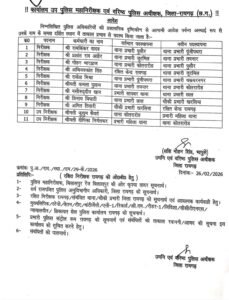रायगढ़: रायगढ़ जिले में पुलिसिंग को और सख्त बनाने के उद्देश्य से वरिष्ठ पुलिस अधीक्षक शशिमोहन सिंह ने बड़ा प्रशासनिक फेरबदल किया है। होली पर्व से पहले जारी आदेश में 9 निरीक्षकों और 2 उप निरीक्षकों के तबादले किए गए हैं।