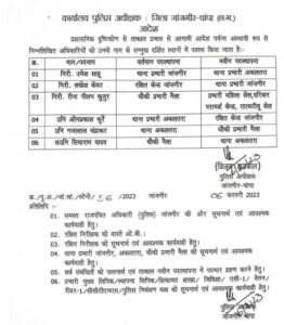जांजगीर। जांजगीर चांपा में बड़ी संख्या में पुलिसकर्मियों के तबादले हुए हैं। जिसमें TI-SI सहित ASI के तबादले हुए हैं। जांजगीर चांपा SP विजय अग्रवाल के द्वारा 3 TI (इंस्पेक्टर / निरीक्षक / थानेदार), 2 SI (सब इंस्पेक्टर / उप निरीक्षक) और 1 ASI का एक साथ तबादला कर दिया गया। जिसे एक थाना से दूसरे थाना में भेजा गया हैं।