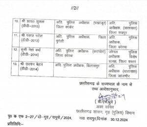 Trending Nowशहर एवं राज्य CG TRANSFER BREAKING : 13 एडिशनल एसपी का तबादला आदेश जारी By: KC NEWS Date: December 30, 2024 CG TRANSFER BREAKING: नए साल से पहले साय सरकार ने पुलिस विभाग में बड़े पैमाने पर तबादला किया है. इसमें 13 एडिशनल एसपी को इधर से उधर किया गया है. आदेश जारी TagsCG Transfer BreakingSP TRANSFER BREAKING Previous articleMP Bhojraj Nag Viral video: बीजेपी सांसद भोजराज नाग विवादों में घिरे, किसी व्यक्ति के साथ बहसबाजी करते वीडियो हुआ वायरलNext articleRajnandgaon Police Recruitment: राजनांदगांव पुलिस भर्ती में गड़बड़ी में एक गिरफ्तारी, तीन आरक्षक और एक महिला अभ्यर्थी भेजा गया जेल KC NEWS Share post: FacebookTwitterWhatsAppLinkedinTelegramCopy URL SubscribeI want inI've read and accept the Privacy Policy. #Crime Updates CG News: 16 साल के लड़के की हैवानियत की शिकार हुई 9 साल की बच्ची! Rice Mill Accident: राइस मिल में हादसा, मजदूर की मौत Amravati Sex Scandal : आरोपियों ने पूछताछ में बताइ अमरावती कांड की कहानी! CG Double Murder Case: नंदई डबल मर्डर केस , 11 दोषी अब जेल की सलाखों के पीछे! Naxali Encounter : 15 लाख के इनामी शहदेव महतो समेत चार नक्सली ढेर More like thisRelated RAIPUR CHALLAN SCAM : E-चालान क्लिक किया और खाते साफ! KC NEWS - 14 minutes ago RAIPUR CHALLAN SCAM : Clicked on the e-challan and... TRUMP CEASEFIRE IRAN : सीजफायर बढ़ा, लेकिन खेल अभी बाकी है, ट्रम्प का बड़ा दांव KC NEWS - 29 minutes ago TRUMP CEASEFIRE IRAN : Trump's big bet on Iran's... PAPPU YADAV STATEMENT : नेता के कमरे गए बिना 90 प्रतिशत महिलाओं की राजनीति नहीं – पप्पू यादव KC NEWS - 13 hours ago PAPPU YADAV STATEMENT : 90% of women cannot enter... US IRAN WAR : 8 ईरानी महिलाएं कौन ? जिन पर ट्रम्प की नई शर्त … KC NEWS - 13 hours ago US IRAN WAR : Who are the 8 Iranian...