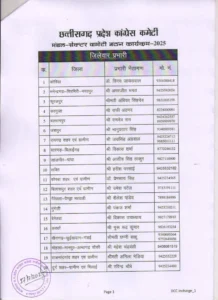 रायपुर। संगठनात्मक मजबूती के लिए छत्तीसगढ़ प्रदेश कांग्रेस कमेटी (PCC) ने बड़ा कदम उठाते हुए सभी 33 जिलों में नए जिला प्रभारियों की नियुक्ति की है। यह फैसला राष्ट्रीय अध्यक्ष मल्लिकार्जुन खड़गे के निर्देश पर लिया गया है। मुख्य उद्देश्य मंडल और सेक्टर कमेटियों का शीघ्र पुनर्गठन करना है।