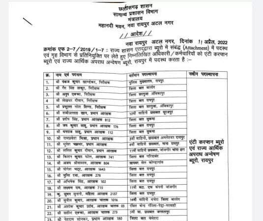 राज्य शासन ने इस संबंध में सोमवार को एक आदेश भी जारी कर दिया। इसे लेकर एक लिस्ट भी जारी की गई है। इस लंबी चौड़ी लिस्ट में कई अफसरों के नाम शामिल हैं। इन नामों को एंटी करप्शन ब्यूरो से हटाकर अलग-अलग जिलों में भेज दिया गया है। कई इंस्पेक्टर और आरक्षकों को अलग-अलग जिलों से एंटी करप्शन ब्यूरो में पोस्टिंग दी गई है।