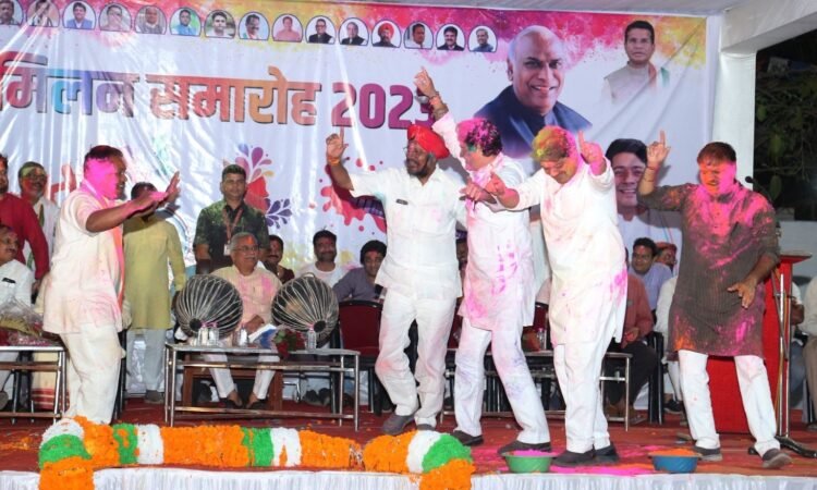 रायपुर । मुख्यमंत्री भूपेश बघेल मंगलवार को रंगों के पर्व होली के अवसर पर राजधानी रायपुर के सुभाष स्टेडियम में आयोजित होली मिलन समारोह में शामिल हुए। उन्होंने निगम परिवार द्वारा आयोजित समारोह में प्रदेशवासियों, निगम के पदाधिकारियों, अधिकारियों-कर्मचारियों, सफाई कामगारों को होली पर्व की बधाई और शुभकामनाएं दी। महापौर ढेबर ने गौठान में महिला स्वसहायता समूहों द्वारा गोबर से बने गुलाल से तिलक लगाकर मुख्यमंत्री भूपेश बघेल का स्वागत किया और उन्हें शुभकामनाएं दीं।