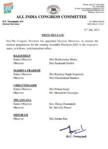 CONGRESS BIG BREAKING: AICC appoints senior election observer before Chhattisgarh elections