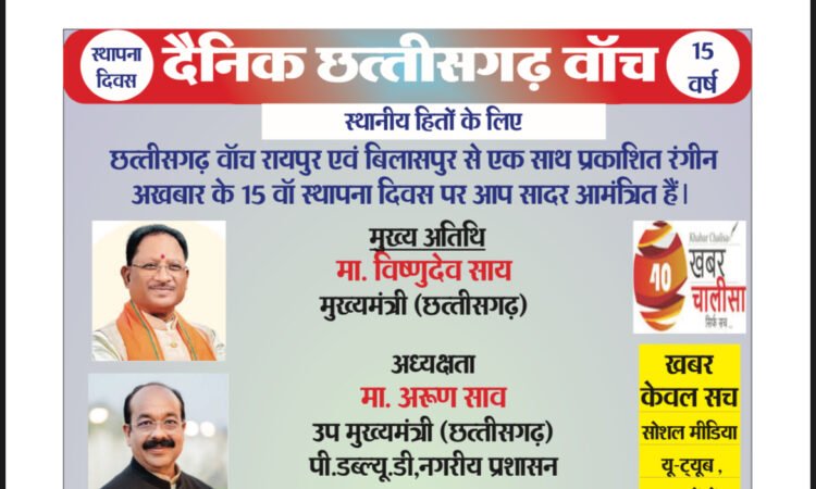 दैनिक छत्तीसगढ़ वॉच का 15वां स्थापना दिवस आज, सीएम विष्णुदेव साय होंगे मुख्य अतिथि