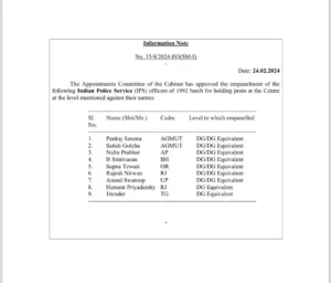 9 IPS अफसरों का इम्पनैलमेंट, केंद्र ने बनाया DG