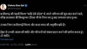 वही आज देर शाम मुख्यमंत्री विष्णुदेव साय ने श्रद्धांजलि देते हुए कहा है कि- छत्तीसगढ़ की पहली फिल्म “कहि देबे संदेस” से अपने अभिनय की शुरुआत करने वाले, वरिष्ठ कलाकार शिवकुमार दीपक के निधन का दुःखद समाचार प्राप्त हुआ। उनका निधन छत्तीसगढ़ी फिल्म और कला जगत की अपूर्णीय क्षति है। ईश्वर से उनकी आत्मा की शांति और परिजनों को संबल प्रदान करने की प्रार्थना करता हूं। ॐ शांति।