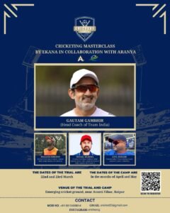 GAUTAM GAMBHIR CRICKET CAMP : गौतम गंभीर की मेंटरशिप में रायपुर में क्रिकेट मास्टरक्लास, 22-23 मार्च को ट्रायल