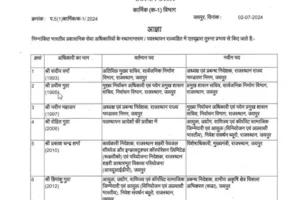 जयपुर। राजस्थान विधानसभा का बजट 3 जुलाई से शुरू होने जा रहा है. इससे ठीक एक दिन पहले मंगलवार को भजनलाल सरकार ने 6 आईएएस अधिकारियों के तबादले कर दिए हैं. संयुक्त शासन सचिव कनिष्क कटारिया ने इस संबंध में नोटिफिकेशन भी जारी कर दिया है, जिसमें सभी 6 आईएएस के नाम, वर्तमान पद और नवीन पद के बारे में जानकारी साझा की गई है.