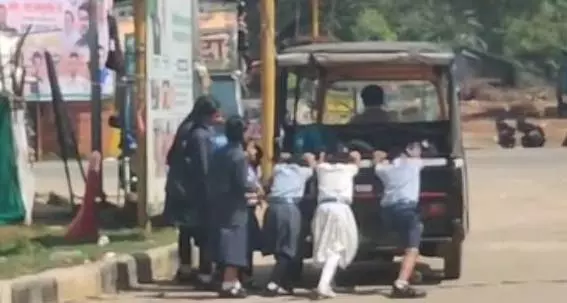 खराब ऑटो को धक्का लगाते दिखे मासूम, स्कूली बच्चों की सुरक्षा पर फिर उठे सवाल