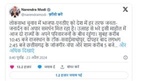 प्रधानमंत्री नरेंद्र मोदी आज भी विपक्षी दलों पर निशाना साध सकते हैं। हनुमान जन्मोत्सव के अवसर पर पीएम मोदी बजरंगबली, भगवान श्रीराम और अयोध्या में श्रीराम जन्मभूमि पर बने भव्य राम मंदिर और रामलला की प्राण प्रतिष्ठा का जिक्र करते हुए एक बार फिर से विरोधी दलों को घेरने की कोशिश करेंगे। गौरतलब है कि, छत्तीसगढ़ को प्रभु श्रीराम का ननिहाल भी माना जाता है।