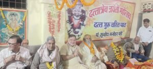 रायपुर: ब्रह्मपुरी रायपुर स्थित दत्तात्रेय मंदिर में महामंडलेश्वर राजेश्री महन्त रामसुन्दर दास जी महाराज, स्थानीय विधायक सुनील सोनी सहित अनेक गणमान्य अतिथि भगवान दत्तात्रेय जयंती के अवसर पर उपस्थित हुए। इन्होंने मंदिर परिसर में ध्वजारोहण किया, हवन कुंड का परिक्रमा करते हुए कार्यक्रम में सम्मिलित हुए, भगवान के दर्शन पूजन के उपरांत उपस्थित स्रोताओं को अतिथियों के द्वारा संबोधित किया गया।