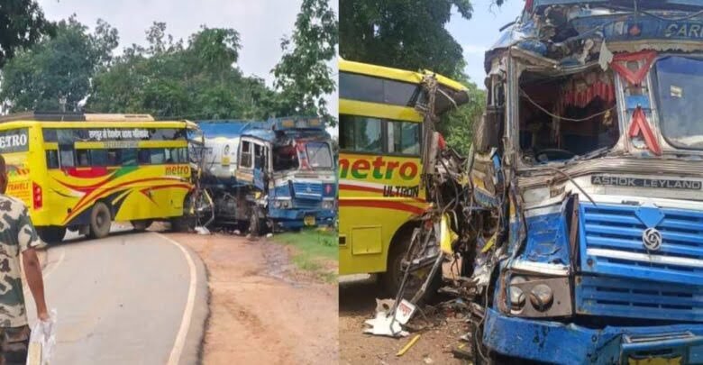 CG ACCIDENT NEWS : गरियाबंद। छत्तीसगढ़ के गरियाबंद जिले में एक यात्री बस और पेट्रोल से भरे टैंकर के बीच जबरदस्त भिड़ंत हो गई. इस घटना में कई लोग घायल हो गए. दोनों वाहनों के बीच टक्कर इतनी जोरदार थी कि दोनों वाहनों के परखच्चे उड़ गए और टैंकर में आग लग गई. घटना की जानकारी मिलते ही पुलिस तुरंत मौके पर पहुंची और सूझबूझ से भभकते आग पर काबू पा लिया गया. यह हादसा इंदागांव और कोयबा के बीच हुआ है. जानकारी के अनुसार,गरियाबंद-देवभोग नेशनल हाईवे 130 सी मुख्य मार्ग पर यात्री बस और भारत पेट्रोलियम के टैंकर के बीच भीषण टक्कर हो गई।