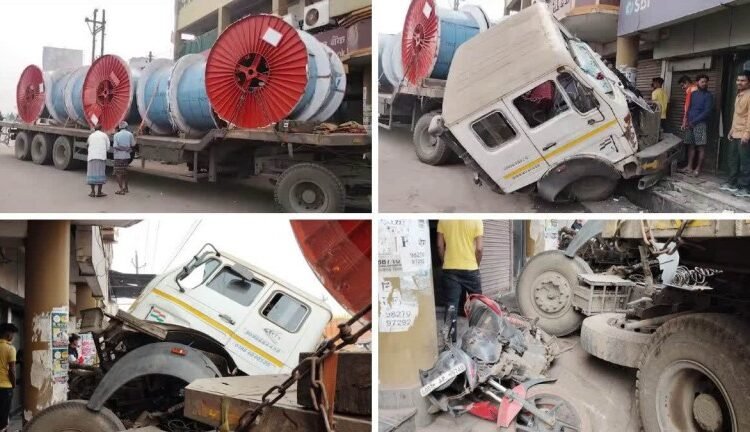 हैंड ब्रेक ठीक से नहीं लगाने पर बड़ा हादसा, कॉम्प्लेक्स में घुसी ट्रेलर वाहन