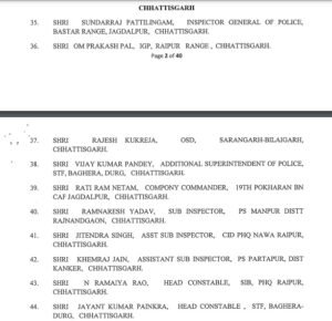 रायपुर। छत्तीसगढ़ के 27 पुलिस अधिकारियों को राष्ट्रीय स्तर पर मेडल दिए जाएंगे। 14 अगस्त को इसकी घोषणा केंद्रीय गृह मंत्रालय ने कर दी है। 15 अधिकारियों को वीरता, 10 को मेरिटोरियस सर्विस मेडल और 2 दो पुलिस मेडल दिया जा रहा है। वीरता मेडल हासिल करने वालों में दुर्ग जिले के SP अभिषेक पल्लव का भी नाम है। पल्लव ने दंतेवाड़ा जैसे नक्सल इलाके में सेवा दी है। राष्ट्रपति मेडल पाने वालों में CID के प्रमुख अधिकारी IG संजीव शुक्ला शामिल हैं। बस्तर के IG पी सुंदरराज को भी मेडल दिया जा रहा है।