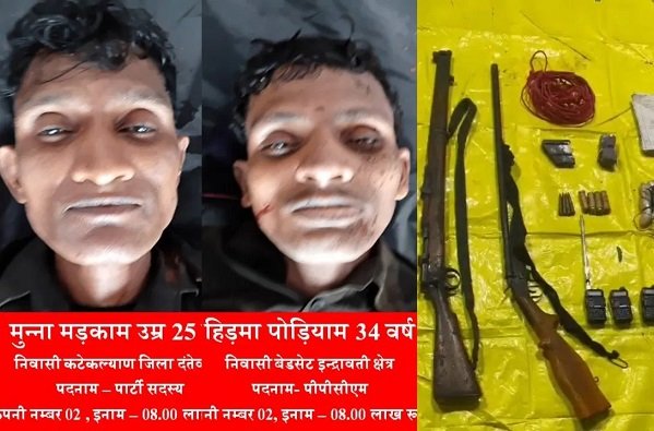बीजापुर मुठभेड़ में मारे गए नक्सली हिड़मा पोडियम (34 वर्षीय) पीपीसीएम कंपनी नम्बर 02 का सदस्य था. जिसपर 8 लाख रुपए का इनाम घोषित था. वहीं दूसरा नक्सली मुन्ना मड़कम (25 वर्षीय) नंबर 01 सदस्य थे. यह भी 8 लाख रुपए का इनामी था.