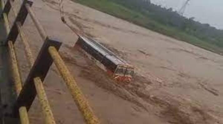 बिजनौर। यूपी-उत्तराखंड बार्डर पर स्थित कोटावाली नदी का जलस्तर अचानक बढ़ने से पानी के तेज बहाव में रोडवेज बस फंस गई। इससे यात्रियों में चीख पुकार मच गई। मौके पर पहुंची पुलिस ने क्रेन मंगवाका राहत बचाव कार्य शुरु कर द‍िया है।