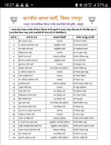 RAIPUR BREAKING: BJP announces list of Raipur Municipal Corporation councilor candidates, see full list