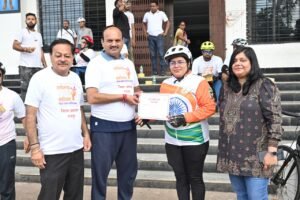 इस दौरान सभी साइक्लिस्टों को महत्वपूर्ण स्थलों के ऐतिहासिक महत्व की संक्षिप्त जानकारी प्रदान की गई। कार्यक्रम में नगर निगम सभापति श्री सूर्यकान्त राठौड़, संस्कृति विभाग अध्यक्ष श्री अमर गिदवानी, जोन 4 अध्यक्ष श्री मुरली शर्मा, जिला रोजगार अधिकारी और अन्य गणमान्यजन सक्रिय रूप से शामिल हुए।