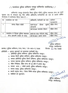 RAIPUR TRANSFER BREAKING : List of transfers released in Raipur Commissionerate…