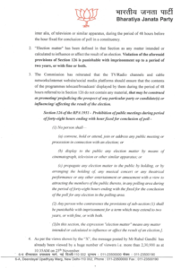 भाजपा ने चुनाव आयोग से मांग की है कि राहुल गांधी ने मतदान वाले दिन आचार संहिता का उल्लंघन करने वाले पोस्ट एक्स हेंडल पर किए हैं। पार्टी की मांग है कि ये आपत्तिजनक पोस्ट हटाए जाएं और राहुल गांधी के एक्स अकाउंट सस्पेंड किया जाए। राहुल गांधी ने अपनी पोस्ट में लिखा कि आज लोगों को कांग्रेस को ही क्यों वोट देना चाहिए।