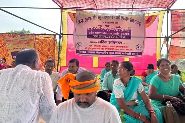 School Safai Karmachari Strike: रायपुर. छत्तीसगढ़ के 43,301 अंशकालिन स्कूल सफाई कर्मचारी सदस्य प्रांतीय आह्वान पर 15 जून 2025 से अनिश्चितकालीन हड़ताल पर हैं. 2 जून को छत्तीसगढ़ के समस्त ब्लॉक मुख्यालय, 6 जून को जिला मुख्यालय और 10 जून को प्रदेश मुख्यालय हड़ताल नया रायपुर तूता धरना स्थल पर किया गया. मुख्यमंत्री विष्णु देव साय, स्कूल शिक्षा सचिव और लोक शिक्षण संचालनालय के संचालक के नाम से ज्ञापन सौपा गया.