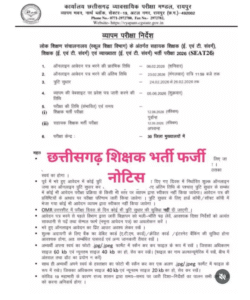 रायपुर। सहायक शिक्षक और व्याख्याता भर्ती परीक्षा 2026 (SEAT-26) को लेकर सोशल मीडिया पर एक फर्जी निर्देश पत्र वायरल होने से हड़कंप मच गया है। इस भ्रामक दस्तावेज़ के सामने आते ही छत्तीसगढ़ व्यावसायिक परीक्षा मंडल (CG Vyapam) ने सख्त रुख अपनाते हुए पुलिस में शिकायत दर्ज कराई है।