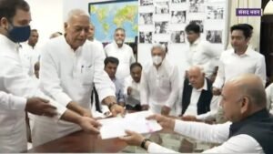 नई दिल्ली. विपक्ष के राष्ट्रपति पद के उम्मीदवार यशवंत सिन्हा ने सोमवार को नई दिल्ली में संसद में अपना नामांकन पत्र दाखिल किया। उनके साथ कांग्रेस नेता राहुल गांधी और राकांपा के शरद पवार भी थे। नामांकन दाखिल करने के लिए कांग्रेस के मल्लिकार्जुन खड़गे और जयराम रमेश सहित कई नेता उनके साथ थे। समाजवादी पार्टी के अखिलेश यादव और … Continue reading राहुल, पवार सहित अन्य विपक्षी नेताओं की मौजूदगी में सिन्हा ने दाखिल किया नामांकन