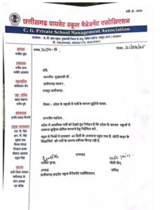 SUMMER VACATION DEMAND CG एसोसिएशन द्वारा भेजे गए पत्र में कहा गया है कि अत्यधिक गर्मी के कारण प्रदेश भर के स्कूलों में अध्ययनरत छोटे बच्चों के स्वास्थ्य पर प्रतिकूल प्रभाव पड़ रहा है। विशेषकर प्राइमरी और मिडिल स्कूल के बच्चों में डिहाइड्रेशन, चक्कर और कमजोरी जैसी समस्याएं सामने आ रही हैं। इस स्थिति में यदि जल्द छुट्टियां घोषित नहीं की गईं, तो हालात और बिगड़ सकते हैं।